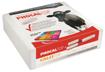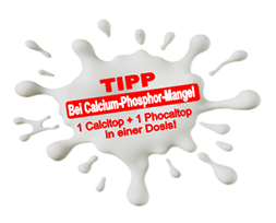 Für eine effiziente Milchfieberprophylaxe ist eine gezielte Versorgung mit Calcium essentiell. Eine Kuh benötigt um die Kalbung ca. 40 g reines Calcium pro Gabe. CALCITOP versorgt die Kuh mit 42 g reinem Calcium pro Dosis (= 2 Boli). Zusätzlich ist bei Milchkühen der Phosphorbedarf um die Kalbung besonders groß. Mit Einsetzen der Laktation braucht sie 1 g Phosphor pro Liter Milch. Hier steigt der Bedarf an Phosphor sprunghaft an. PHOCALTOP versorgt die Kuh mit 30 g reinem Phosphor pro Dosis  (= 2 Boli). Um der Kuh über die kritische Phase der Kalbung hinwegzuhelfen, sollten Calcium und Phosphor kombiniert und gezielt eingesetzt werden.